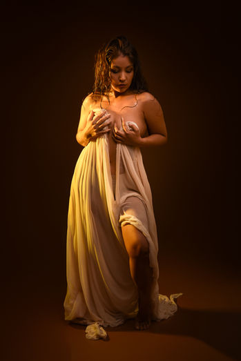 La desición es 100% tuya. Esta sesión se adapta totalmente a ti. Puedes elegir hacerlo desnuda o con ropa interior (color piel) con telas, vestuarios simbólicos, cuerpo pintado, o pétalos. Lo importante es que te sientas cómoda y representada.